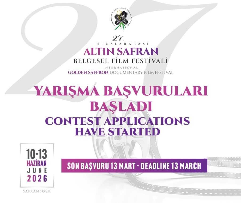 Safranbolu’da 10-13 Haziran 2026 tarihlerinde 27’ncisi düzenlenecek olan Uluslararası Altın Safran Belgesel Film Festivali kapsamında gerçekleştirilecek belgesel film yarışmaları için başvurular başladı.