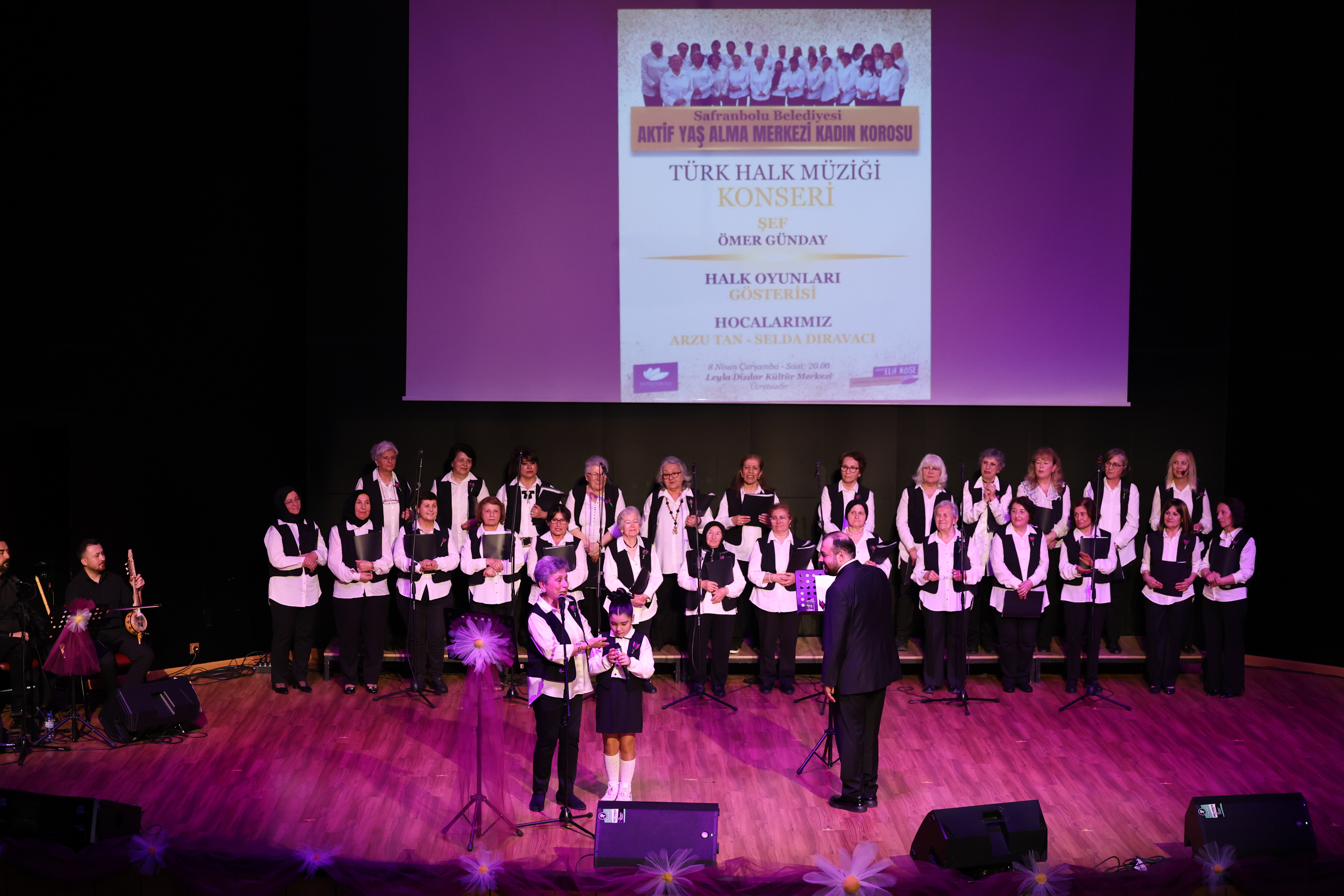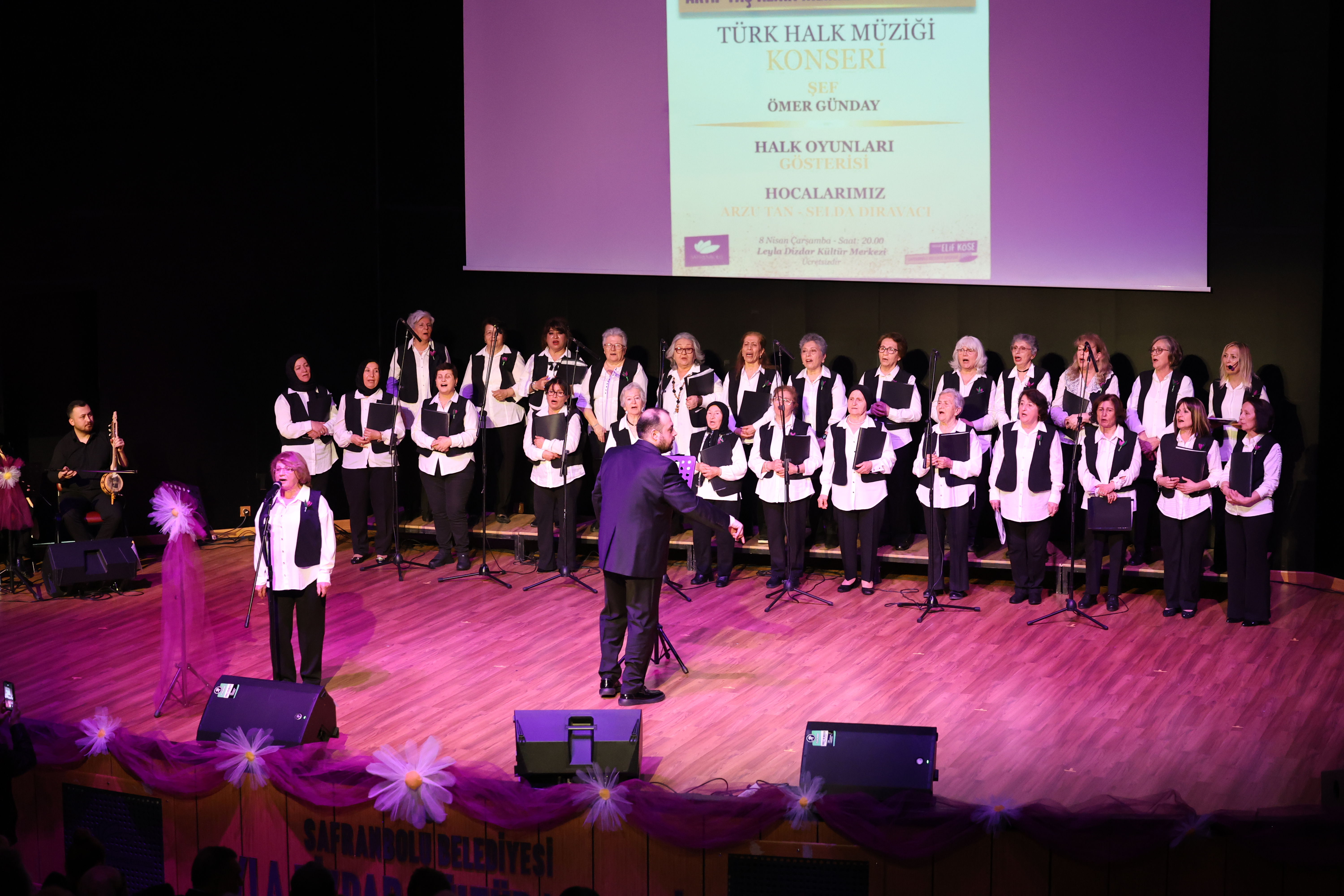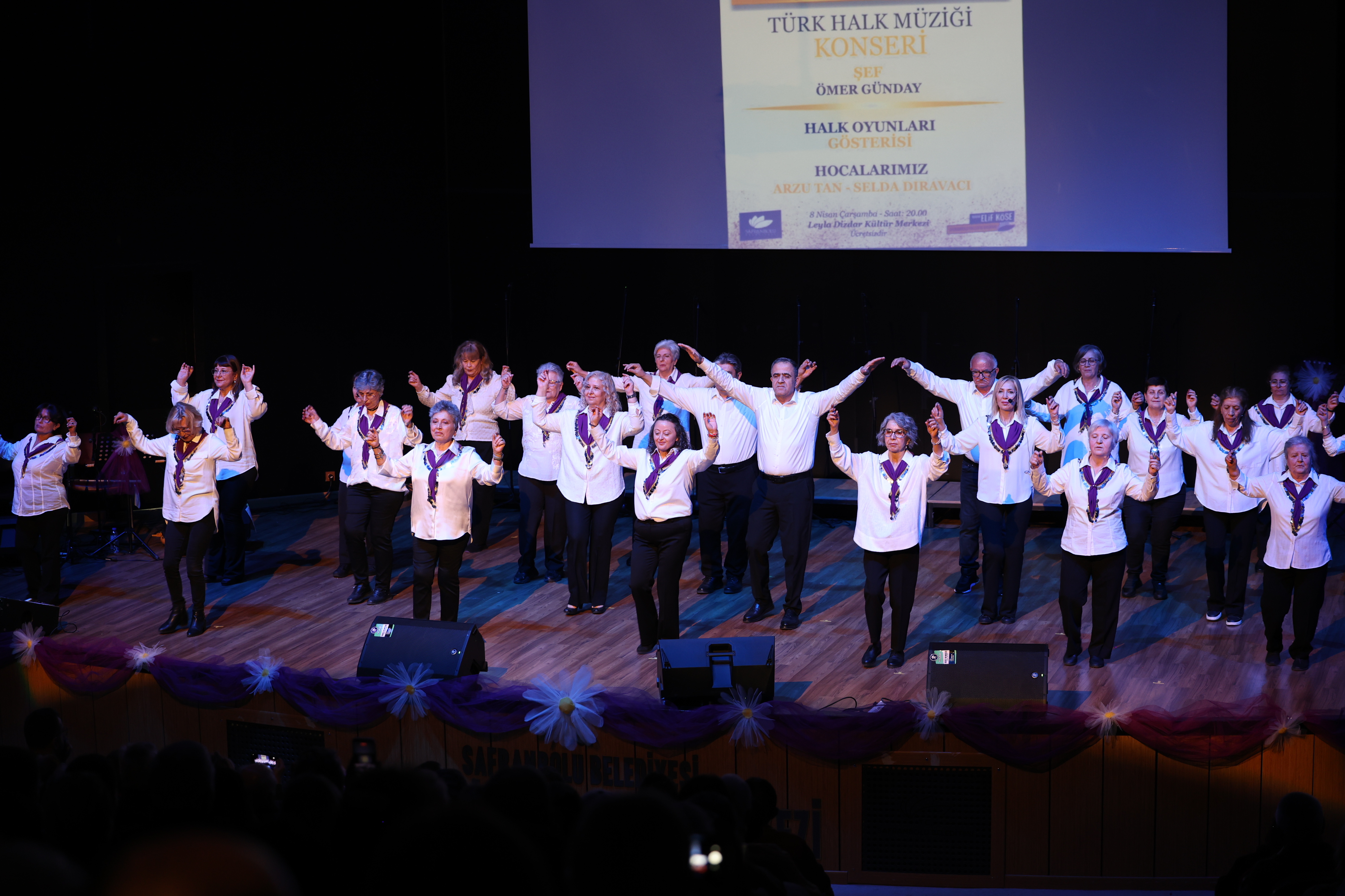 Safranbolu Belediyesi Leyla Dizdar Kültür Merkezi’nde düzenlenen etkinlikte, Türk Halk Müziği’nin güçlü sesi Şef Ömer Günday yönetiminde sahne alan Aktif Yaş Alma Merkezi Kadın Korosu Anadolu’nun eşsiz eserlerini seslendirirken; Arzu Tan ve Selda Dıravacı önderliğinde sahnelenen halk oyunları gösterisi gecenin coşkusunu zirveye taşıdı. Vatandaşların salonu tamamen doldurduğu gecede, türküler ve yöresel danslar Safranbolululardan tam not aldı.
